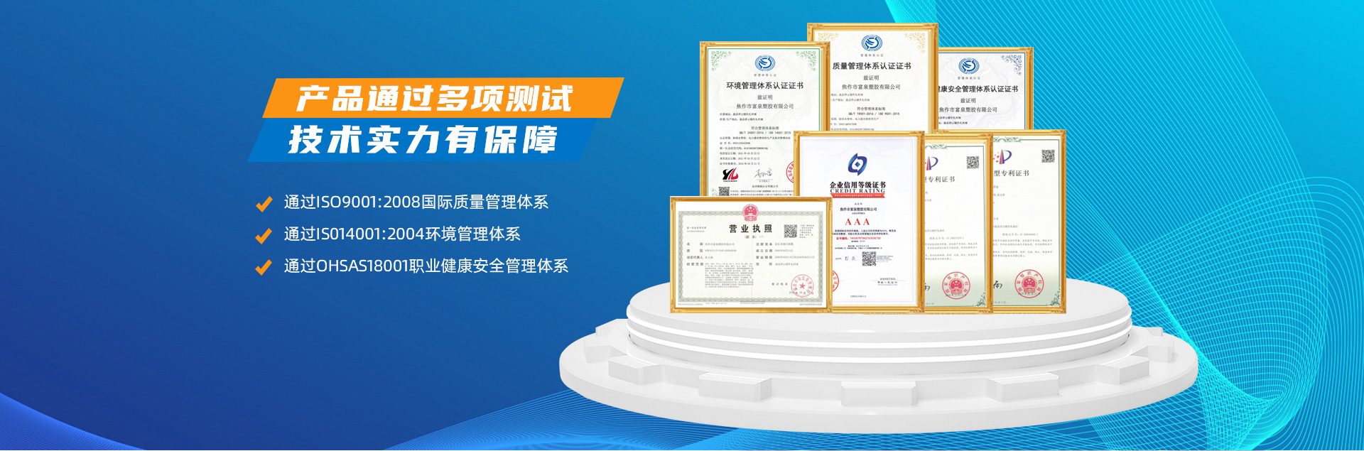-   焦作市富泉塑膠有限公司,創(chuàng)立于1995年,是一家集研發(fā)、設計、生產、銷售為一體的大型管材企業。公司位于太極故里、黃河之濱一一河南焦作溫縣。公司占地128畝,現有職工210余人,其中具有中技術職稱的19人。生產、檢驗設備58臺(套),包括PVC實壁管生產線11套、PE實壁管生產線12套、HDPE雙壁波紋管生產線6套、PVC雙壁波紋管生產線5套,檢驗設備14臺(套)。主要產品有:Φ20mm-630mm、各種壓力規(guī)格的PVCU、PVC-M、PE給水管材,PVC-U節(jié)水灌溉管材,HDPE燃氣和礦用管材,DN200-800mm的HDPE、PVC雙壁波紋管及各種噴灌、滴灌工程材料。承接大中型市政供排水、飲水安全及節(jié)水灌溉等工程。  富泉塑膠公司重視產品的質量、安全、環(huán)保和節(jié)能,在同行業中率先完成了“新華節(jié)水產品認證”,全方面通過ISO9001:2008國際質量管理體系、IS014001:2004環(huán)境管理體系和OHSAS18001職業健康安全管理體系的一體化導入,并建立起規(guī)范的現代企業管理體系。公司以“質量”為先導,采用質量跟蹤、多環(huán)節(jié)把關的方法,組建具有行業水準的企業技術檢測中心,常年委托水利部節(jié)水灌溉設備檢測中心、河南省產品質量監(jiān)督檢驗院對產品跟蹤檢測,并由中國人民保險公司承保產品質量。公司連續(xù)多年被河南省水利廳確定為“安全飲水設備、節(jié)水灌溉設備”定點生產企業,并獲得“中國名優(yōu)產品”“質量、服務、信譽AAA企業”“河南省**產品”“河南省水利企業”“河南省守合同、重信用企業”等榮譽稱號。  富泉塑膠公司堅持“用戶為上”的服務理念,長期以來,全方面關注客戶價值,不斷提升服務水平。服務隊伍常年為客戶的產品設計、施工、安裝提供合理的方案和全程細致、周到、**、快捷的技術服務。公司自成立以來,一直堅持以人為本的宗旨,塑造企業形象,并致力于新產品的開發(fā),憑借雄厚的技術開發(fā)能力,先進的工藝制造流程,嚴格的質量管理保證體系,優(yōu)良的售后服務網絡,已成為河南省大的飲水、灌溉及排水管材設備制造商。產品暢銷全國,而且還以公司雄厚的綜合實力在業界中占據著重要的地位。